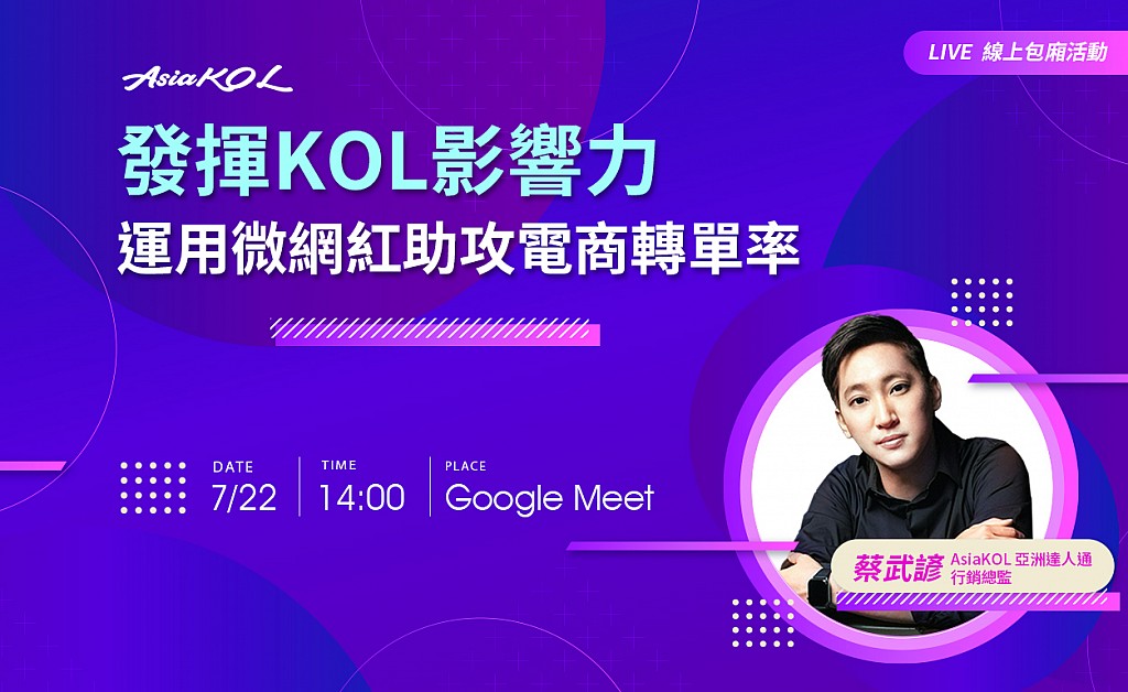 ● 發揮KOL影響力 運用微網紅助攻電商轉單率 |7/22(四)14:00-14:50