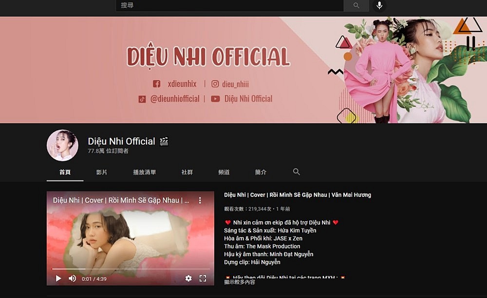 Dieu Nhi 除了當演員之外,還作為美食 vlogger 評論越南美食,如越南式麵包、米線等,成功進入了 TOP 50 YouTuber 排行榜,也是唯一獲得超高互動參與指數的 KOL。