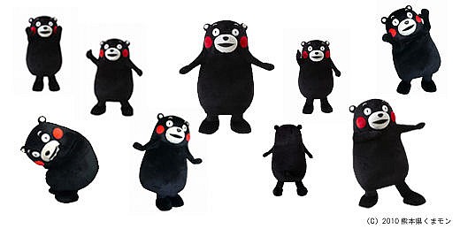 九州熊本縣的「くまモン」KUMAMON,原本其實是在2011年時為了慶賀九州新幹線通車所製作的活動吉祥物,不過因為效果很好所以被保留了下來。くまモン被熊本縣知事任命為營業部長,並且還出了單曲以及舞蹈影片,為推廣熊本縣觀光而努力。くまモン的造型十分可愛,黑色圓滾滾的身軀搭上無辜的大眼,以及兩頰紅色的酒窩,先天視覺就足夠討喜。