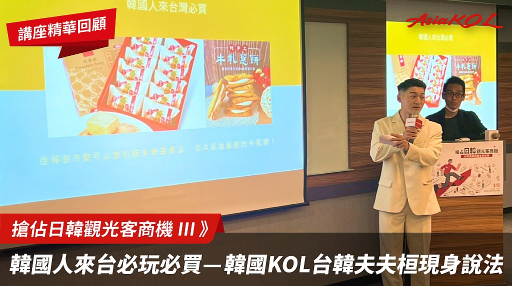 台灣在外國人眼中是什麼樣貌呢?AsiaKOL 在 3/10 的《搶占日韓觀光客商機 台灣品牌的機會與挑戰》講座中,除了分享日韓旅遊數據趨勢洞察、跨境網紅行銷策略及口碑行銷解方外,更邀請到了日本、韓國人氣網紅現身說法,分享他們眼中的台灣及台灣哪些東西最吸引日韓遊客。韓國在台人氣網紅台韓夫夫 Hwan 桓,針對主題「旅遊分享:日韓旅客來台行程規劃,網紅嘉賓現身說法」分享個人經驗及韓國人在台的旅遊偏好。