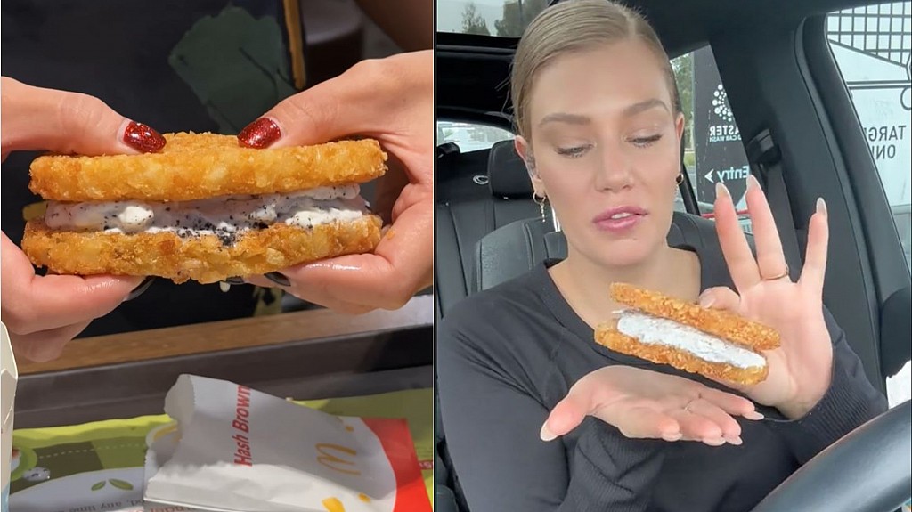 這是什麼神奇的吃法?近日,一部影片在 TikTok 上瘋傳,影片內可見一名女子將麥當勞Oreo 冰炫風塗在薯餅上,再蓋上一片薯餅做成「薯餅冰炫風三明治」,大口大口的吃得非常過癮!