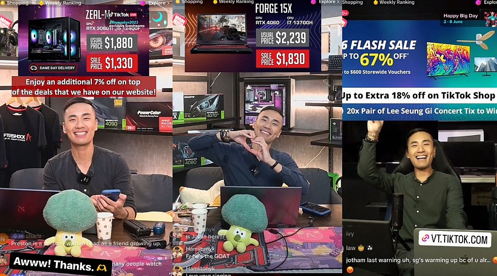 這位前新加坡保健集團員工感覺自己的一部分在他形容為「令人窒息」的環境中死去了。 因此,當一年多前,一位前同學向他提出為消費科技公司 Prism+ 進行廣告活動的機會時,他很快就同意了。這次合作的時機恰逢 TikTok 旗下電子商務部門 TikTok Shop 進入新加坡,Lim 開始在 TikTok Shop 上為 Prism+ 主持長達 13 小時的直播,直到該品牌在電商網站的電子產品類別中名列前茅。在他跨足競爭對手平台 Shopee 上的串流媒體業務之前,他的成功為他贏得了 Sterra 和 Omnidesk 等其他電子產品品牌的交易。