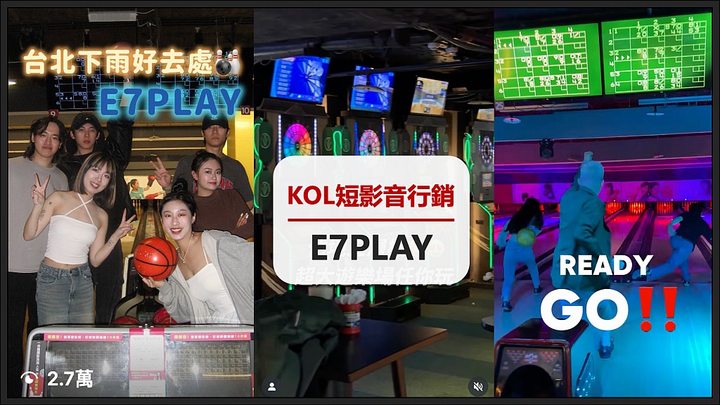 E7PLAY 是一間 24 小時營業的室內遊樂場,集結保齡球、撞球、飛鏢、漫畫、按摩椅等豐富設施,主打「一票玩到底」的高 CP 值體驗。為了擴大品牌知名度並提升社群討論度,E7PLAY 委託 AsiaKOL 團隊策劃 KOL 社群擴散專案。本案以「用沉浸式短影音,讓觀眾在線上就有想出門的衝動」為主軸,透過多位不同類型的 KOL體驗內容,成功創造高觸及與高互動成效。以下將帶你一探 AsiaKOL 團隊如何為客戶打造高效 KOL 行銷與成功秘訣。
