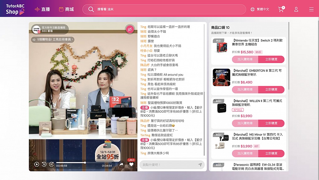 當直播頻率提升、檔期愈來愈密集後,一個問題開始浮現:該怎麼在「檔期聲量爆發」與「日常穩定成交」之間取得平衡?TutorABC 作為台灣視訊教育領域的領導品牌,投入超過 3 億美元研發雙向視訊技術,並將其延伸至直播購物,打造可與主播即時互動的雙向視訊平台,讓消費者在觀看直播時也能像逛實體店般安心,隨時可提問與確認商品細節。