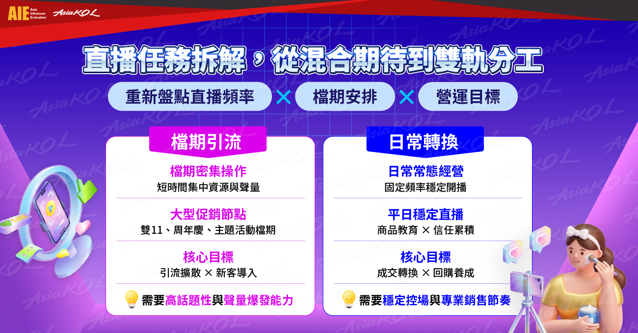 當角色分工清楚,檔期與日常各自發揮所長,直播不再只是一次次嘗試,而是可持續調整與累積的營運資產。