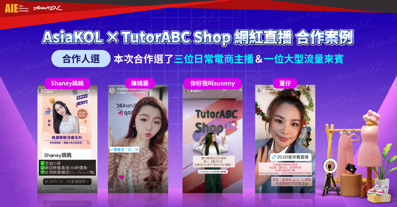 未來若有品牌希望透過互動式直播拓展銷售機會,也可透過 AsiaKOL 與 TutorABC Shop 合作,尋找合適的主播資源與合作模式,為直播銷售帶來更多實務上的可能性。