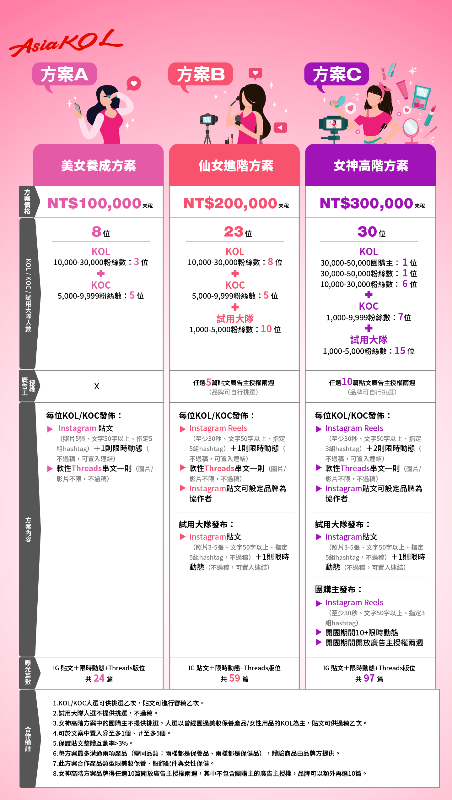 從曝光、互動到推升銷售力,KOL+KOC+團購主+試用大隊聯手打造專屬你的「美力」行銷計畫!